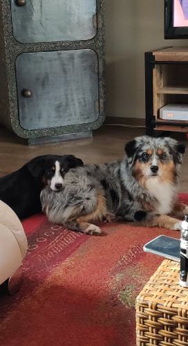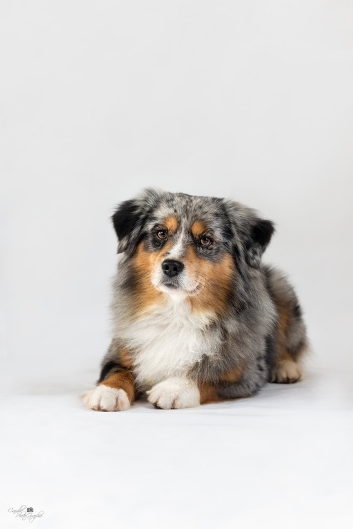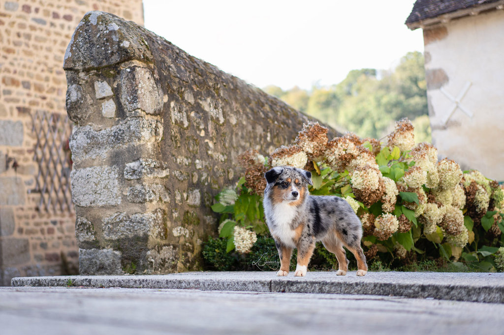 Nous constatons avec plaisir qu'il est souvent remarquer par les éleveur de berger australien standard qui viennent nous voir et nous félicite d'avoir un mini qui pour une fois ressemble à un berger