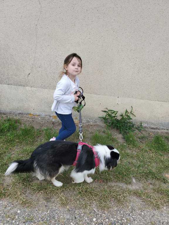 C'est une chienne douce, glue et très joyeuse ! Une peluche à enfant !